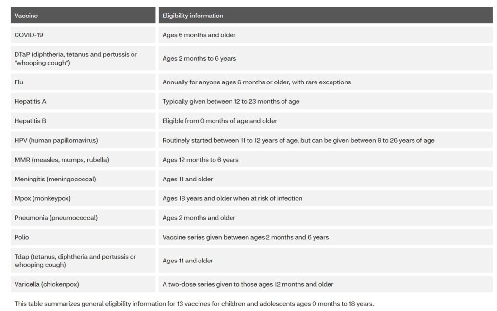 インフルエンザとCOVID-19については、6か月以上の乳児から接種可能。