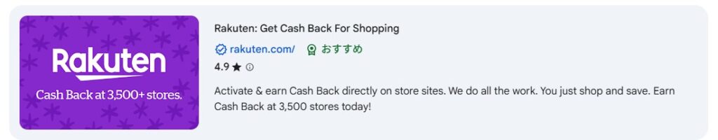 - 検索結果から、Rakuten: Get Cash Back For Shoppingをクリック。